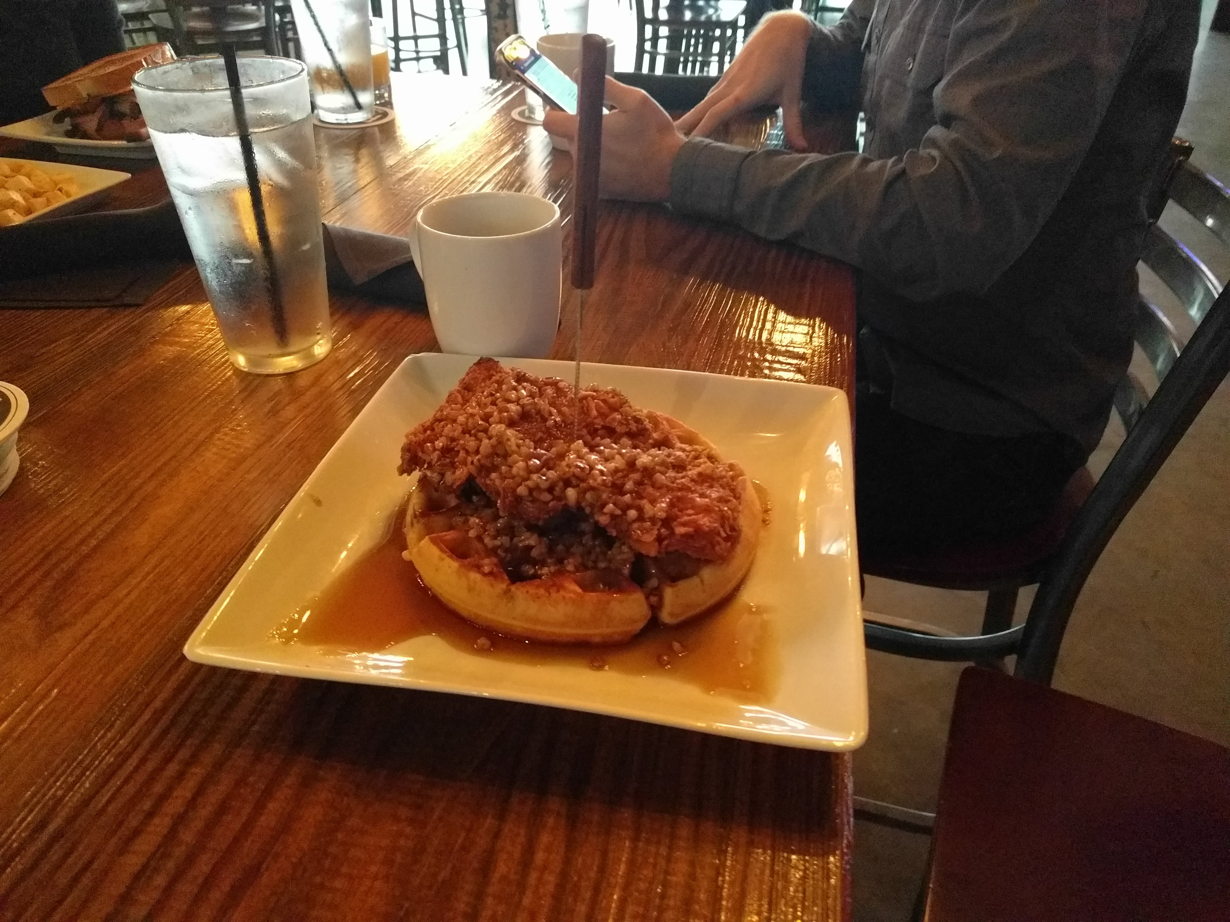 It wasn’t difficult to find an excuse for a delayed start that Sunday morning: we went for brunch so that our Chicken and Waffle connoisseur could experience the Corpus Christi version of the height of American cuisine.