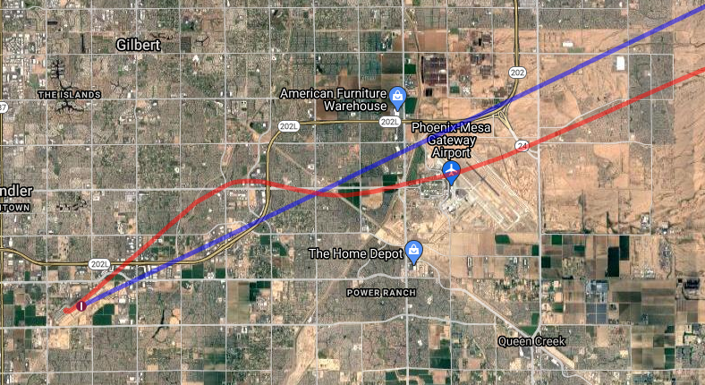Then it was back home, with the standard approach into Chandler from the East: vectored by Phoenix Approach into the way of Gateway Airport (poor Gateway controllers), then told to contact Chandler Tower and cleared to land.